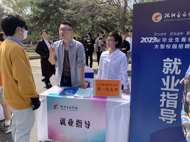 为推动学习贯彻习近平新时代中国特色社会主义思想主题教育走深走实,贯彻落实党中央、国务院“稳就业”“保就业”决策部署,全面落实省委省政府关于就业工作有关要求,按照学院2023届毕业生就业创业工作相关方案要求,4月19日,我院在三好校区举办“全力攻坚 音你逐梦 职向未来”2023届毕业生春季促进月大型校园招聘会。辽宁省大学生就业创业中心副主任陈洪龙来我院调研指导。我院党委书记赵恒心,纪委书记、监察专员闫玉娇,院长助理付晓东,党委委员、组织部部长张庆玫与用人单位和毕业生现场交流。相关职能、教辅部门负责人,教学单位领导班子成员、毕业班辅导员参加招聘会。
