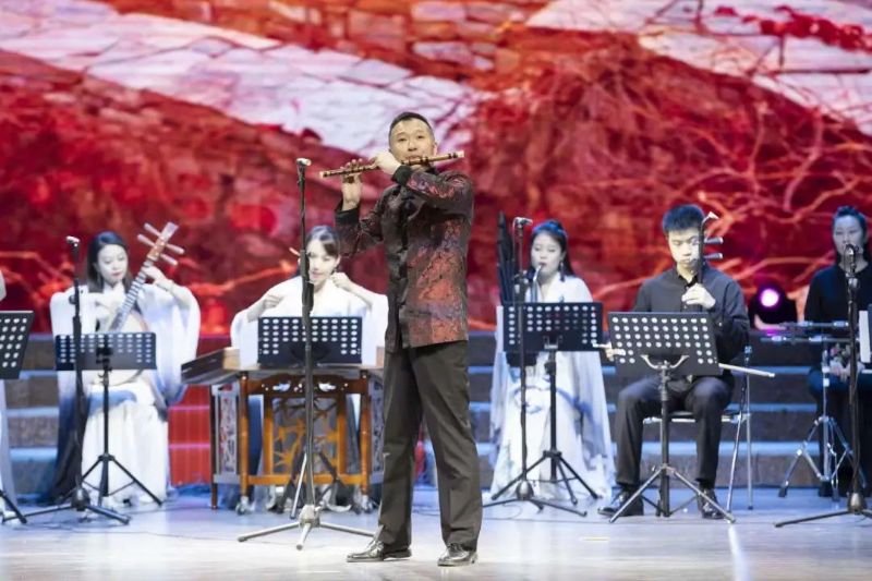 民乐合奏《我和我的祖国》优美抒情的演绎,拉开了本次专场音乐会的序幕。曲目《春风十万里》、竹笛独奏《沂蒙山歌》、古筝独奏《山丹丹花开红艳艳》、手风琴独奏《我为祖国守大桥》等节目逐一登场,收获台下观众的阵阵掌声。本次专场音乐会选择的节目,既有国产一区二区日本在线老校友傅庚辰作词作曲的经典曲目,也有为此次专场音乐会倾情创作的《一路同行》《像你一样》等全新曲目,还有从国产一区二区日本在线教材里精选出来的曲目。