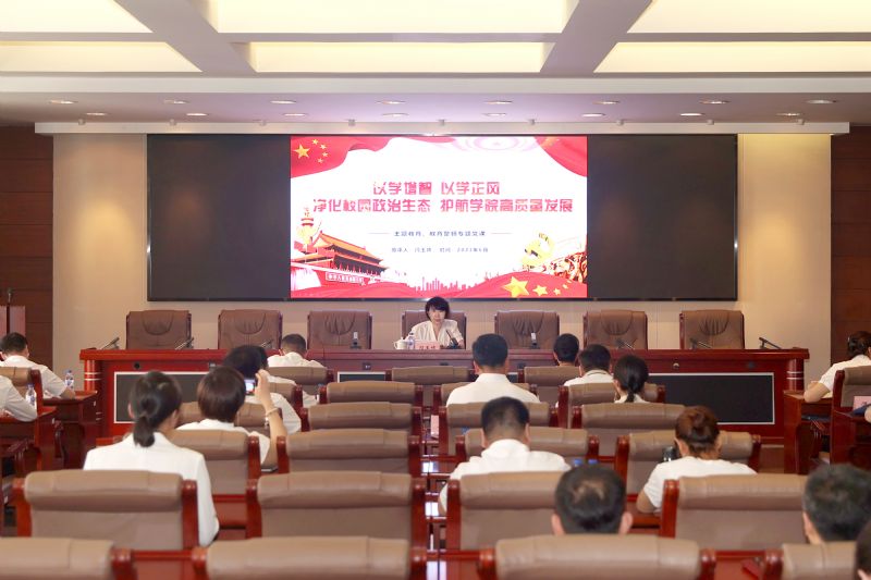 为深入开展学习贯彻习近平新时代中国特色社会主义思想主题教育,教育引导学院纪检监察干部以学铸魂、以学增智、以学正风、以学促干,推动纪检监察干部队伍教育整顿走深走实,6月30日,学院纪委书记、监察专员,主题教育领导小组副组长闫玉娇作题为《以学增智 以学正风 净化校园政治生态 护航学院高质量发展》的专题党课。