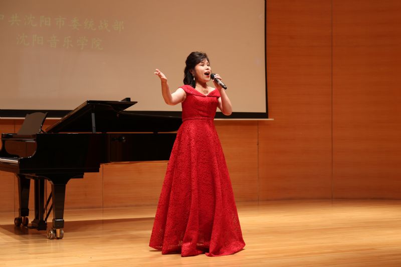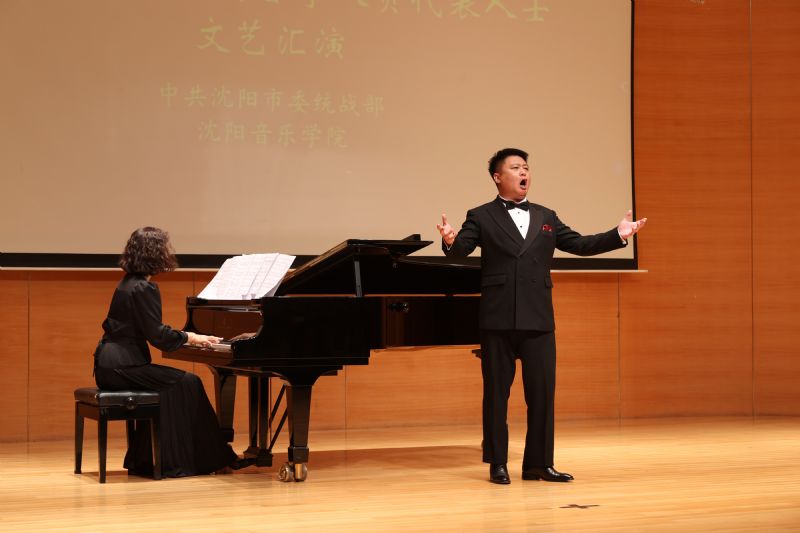 我院音乐教育学院教师、民革沈音支部祖国统一工作委员、沈音侨联成员任程,沈阳师范大学附属艺术学校学生潘怡冰演唱《万疆》