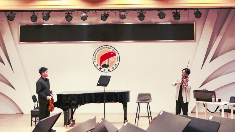 在大师班授课中,秋溪艺术大学副校长全星海教授和教师尹栋焕教授对我院小提琴专业学生的演奏给予了指导。全星海肯定了学生扎实的演奏基础和专业技能,以细致深入的讲解加深了学生对演奏技术的认识与理解;尹栋焕教授针对每位学生的特点因材施教,帮助学生解决演奏技术中出现的问题,提升音乐理解力。
