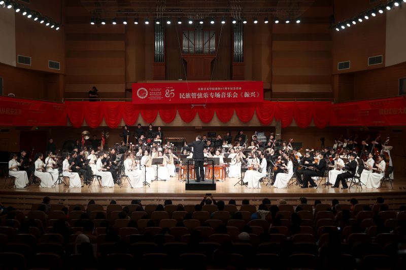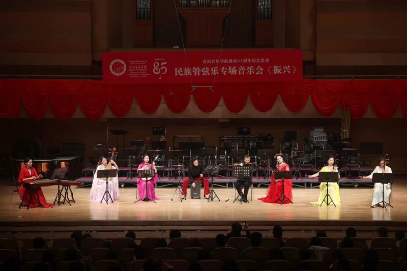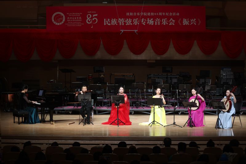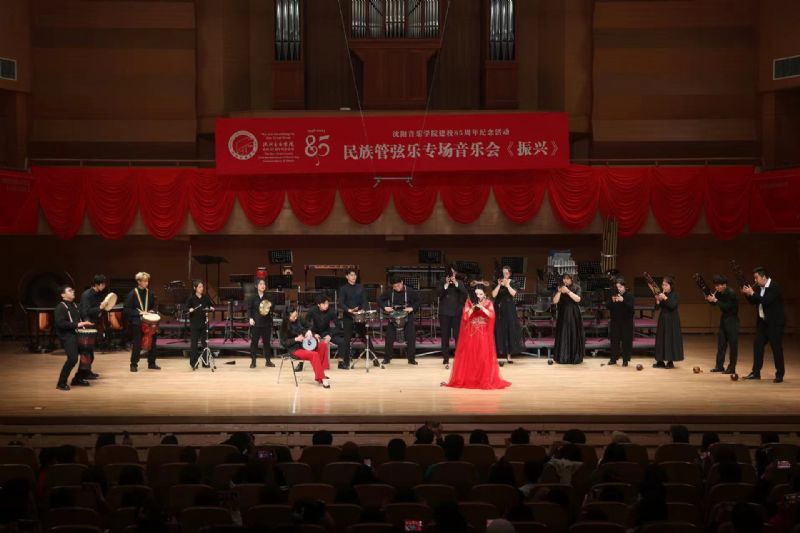本场音乐会的主题乐曲二胡协奏曲《振兴》是作曲家李博禅应我院民族器乐系主任魏国教授委约,于2022年创作的作品,通过音乐描绘了辽宁老工业基地发展建设的峥嵘岁月,歌颂东北黑土地的大美与壮阔,表达了东北人民对实现辽宁老工业基地全面振兴发展的祝福与企盼。此外,音乐会还上演了形式多样、各具风韵的民族管弦乐作品。经典乐曲《节日序曲》以唢呐为主奏乐器,曲调欢快热烈,民族韵味浓郁,充满了欢庆的气氛。室内乐作品《天河》由竹笛、高音笙、中阮、大阮、二胡、钢琴六件乐器合作演奏,旋律层层递进、大气流畅,令人动容。乐曲《锦瑟芳华》由扬琴、大提琴和钢琴演奏,以中西乐器的结合展现了具有开放性、融合性的音乐之美,让人回味无穷。唢呐独奏《百鸟朝凤》惟妙惟肖模仿了布谷鸟、画眉、黄雀等鸟的啼鸣,生动而风趣,表现了大自然生气勃勃的景象。箜篌四重奏《梦回龟兹》由箜篌与乐队协奏曲《伎乐天》改编而成,再现了消失的文明古国龟兹的景象。古筝与钢琴作品《山水情》意境幽深,犹如一幅简洁的淡笔水墨,充满中国式的优美韵味。笙与打击乐《胡旋•胡旋》节奏鲜明欢快,生动再现了白居易诗词《胡旋女》中的意境。民族室内乐作品《在那遥远的地方》旋律悠扬婉转,尽显民族器乐的风韵。音乐会由沈音北方民族乐团演奏,整场演出气氛热烈、精彩纷呈,为沈城观众呈现了一场民族管弦乐的视听盛宴。音乐会由辽宁电视台著名主持人吴庆久主持。