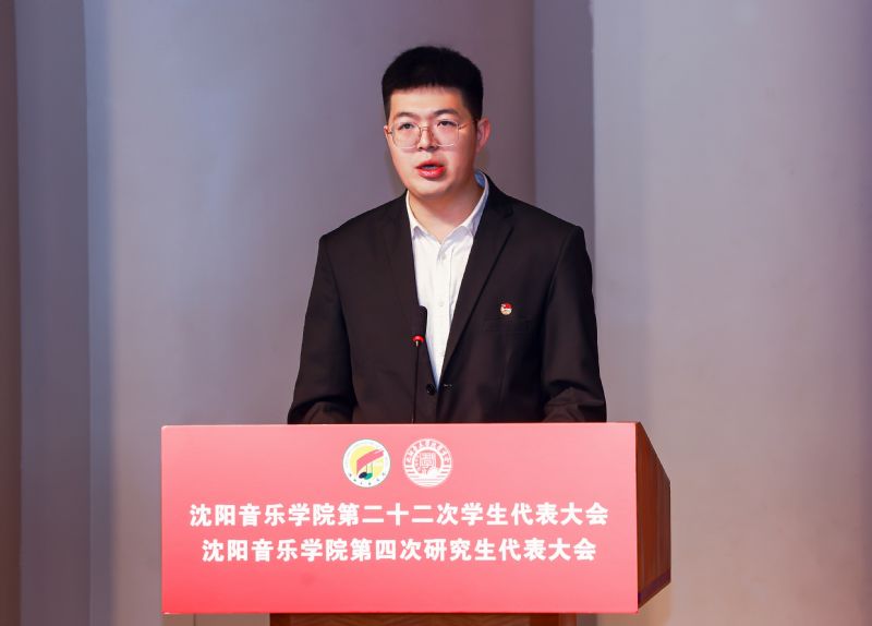 李金宇代表沈阳市学联致辞,对大会的召开表示热烈祝贺,对我院学生会(研究生会)在服务同学成长成才中取得的优异成绩和丰硕成果给予充分肯定。李金宇同与会代表分享了工作感悟,提出“要旗帜鲜明保持和增强学生会的政治性;矢志不渝保持和增强学生会的先进性;锲而不舍保持和增强学生会的群众性”,并号召全体同学为新时代辽宁全面振兴发展、打造新时代“六地”贡献沈音青年的力量。