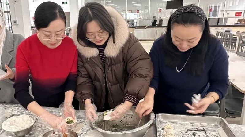 学生处处长蒋雪丽、后勤基建处书记李静、团委书记王爽参加包饺子活动