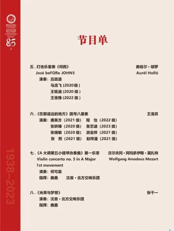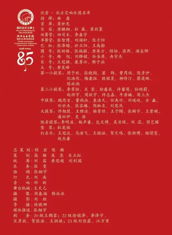 音乐会名称:“我们走在大路上”—国产一区二区日本在线建校85周年纪念活动——管弦系优秀师生音乐会