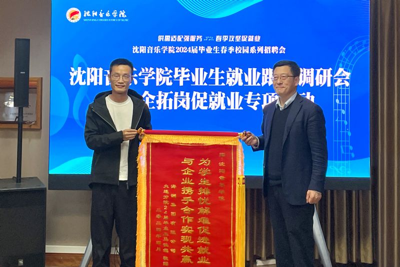 赵恒心表示,学院党委始终高度重视毕业生就业工作。近年来,学院突出人才培养的实践性、科学研究的应用性、服务社会的适应性,聚焦辽宁新时代“六地”目标定位,努力培养“德艺双馨”的艺术人才,在推进中国式现代化辽宁实践中彰显了新时代沈音人的担当作为。希望以此次跟踪调研会为契机,与用人单位进一步夯实合作基础,在就业创业、实习实训等方面开展多元、多向、多赢合作,不断提高人才培养与社会需求的契合度,为辽宁全面振兴新突破三年行动提供人才支撑。会上,赵恒心代表学院接受海澜集团赠送的锦旗。