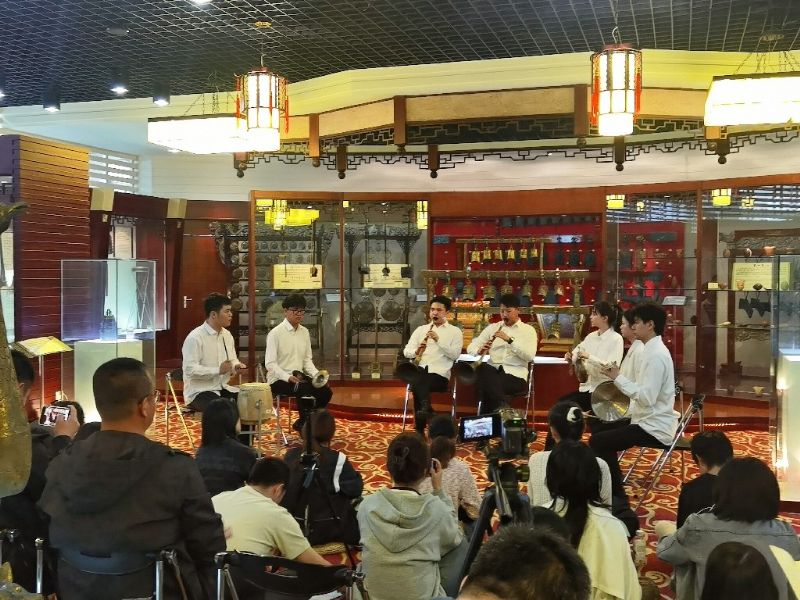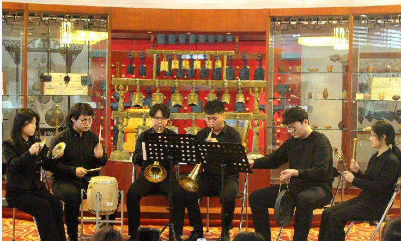 4月26日,图书馆举办以“辽宁鼓乐”为主题的“国乐展坛”系列活动,特邀学院辽宁鼓乐传习社成员带来具有浓郁辽宁民间音乐特色的辽南、辽东流派鼓乐展演。学院纪委书记、监察专员闫玉娇,民族器乐系主任魏国,民族器乐系、音乐学系教师代表,辽宁鼓乐国家级非遗项目代表性传承人张连悌、唐海峰及校外音乐爱好者70余人观看展演。活动由图书馆馆长高萍主持。