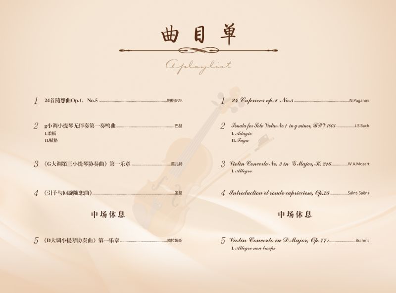 音乐会名称:简上杰小提琴独奏音乐会