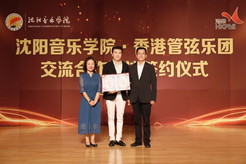 5月16日,我院与香港管弦乐团交流合作协议签约仪式举行。辽宁省委港澳工作办公室(辽宁省政府港澳事务办公室)主任王冰、交流处处长李松涛,香港特区政府驻京办副主任阮慧贤、文化交流总监连美娇,香港特区政府驻辽宁联络处主任冯伯豪,香港管弦乐团行政总裁霍品达、事务总监陈韵妍、艺术策划总监塚本添𤥁、第二副团长王亮,我院党委书记赵恒心,党委副书记孙旭东,副院长庞渤、王硕出席签约仪式。学校办公室、港澳台事务办公室、艺术实践教学中心和管弦系相关负责人及师生代表参加签约仪式。