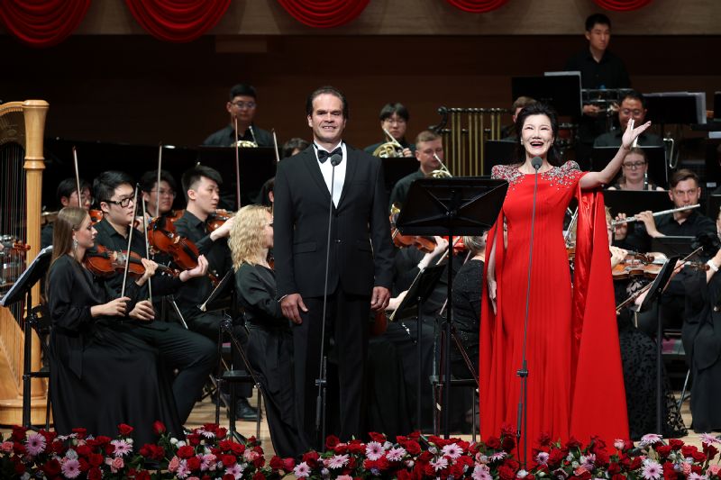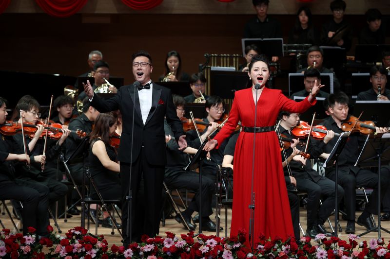 在乐团指挥拉苏洛夫·奥塔别克执棒指挥下,滨海边疆区爱乐乐团太平洋交响乐团与我院北方交响乐团联袂带来俄罗斯著名作曲家格林卡的《鲁斯兰与柳德米拉》序曲与我院杰出校友、著名作曲家刘炽的《我的祖国》。起伏有致的乐曲旋律、激烈炽热的情绪表达,一俄一中两首作品铺展出中俄文化交流的华美乐章。钢琴独奏《伦巴舞曲》充分展示了拉丁音乐和舞蹈的精髓和灵魂,让听众深刻感受到浪漫与热情。男声独唱《莫斯科郊外的晚上》《蓝色永恒》、男女声二重唱《我爱你,中国》都是中俄两国人民耳熟能详的经典歌曲,深情优美的歌声与大气磅礴的交响乐相互交织,汇成了中俄两国文化源远流长的交融之音。芭蕾舞剧《罗密欧与朱丽叶》选段《蒙太古与凯普莱特》与《加雅涅》选段《列津斯基舞曲》,时而热情奔放、清脆嘹亮,时而柔美温婉、细腻轻盈,音乐的力量与情感的力量交相辉映,给人以美的享受、心灵的启迪。