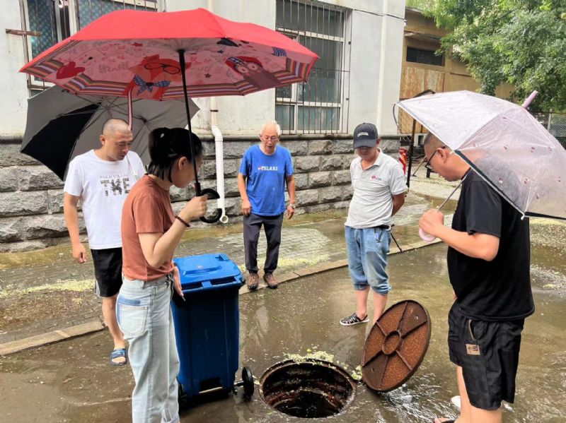 在学院党委的安排部署下,后勤基建处、保卫处等相关部门迅速行动,第一时间召开安全工作会议,组建应急指挥小组。学院分管安全和后勤工作的领导靠前指挥、深入一线,实地检查指导各项防汛工作。后勤基建处安排专人24小时值班巡查,及时排查处理风险隐患,确保发生险情第一时间报告,第一时间处置。后勤人员冒雨全面检查屋面排水口、排水管道,排查建筑物有无漏水、洪水倒灌、设施损坏等情况;对变电所、室外箱变、配电系统不间断巡查,重点巡查电缆沟积水、电梯井积水及各楼用电设施设备;对易积水点进行严密监控,调度排污车、抽水泵对下水井和积水地点及时排水。在沈三校区发现处理积水16处、建筑物漏水21处,清理排水渠、排水管道42处,清理树木折断13处,共排危排险70余处。保卫处组织人员在暴雨过后快速清理校门处积水,方便车辆人员进出;加强校园巡逻频次,发现楼宇漏点快速处置抢修;坚持值班值守,第一时间发现雨水倒灌室内险情,并快速组织人力开展防汛抢修工作,将财产损失降到最小。
