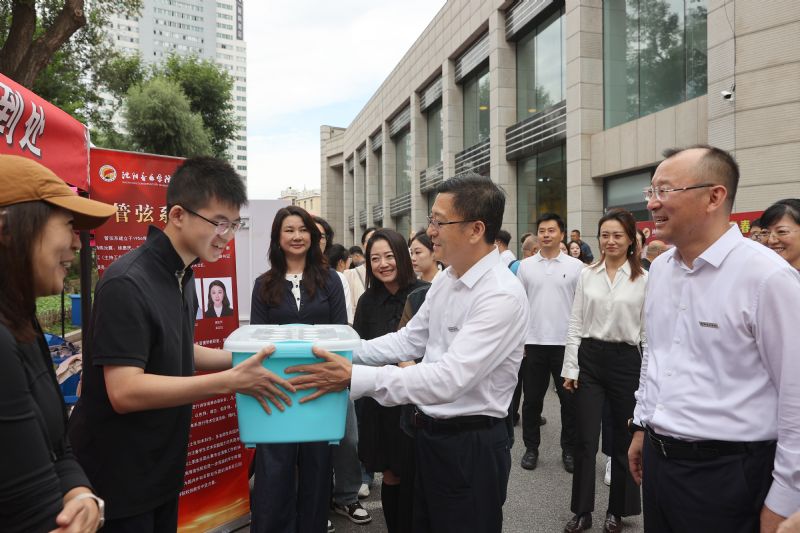 9月11日上午9时,学院党委书记赵恒心、党委副书记孙旭东、副院长庞渤、副院长王硕、纪委书记张健一行前往三好校区、桃仙校区、长青校区实地走访,党政办公室、学生处、研究生部、团委、教务处相关负责人陪同前往。学院领导到各院(系)新生报到处欢迎新生,为他们佩戴校徽,送上纪念品、生活用品大礼包,并为报到当天过生日的同学送上生日蛋糕和祝福,勉励他们传承鲁艺红色基因,担负文艺强国使命,做立大志、明大德、成大才、担大任的时代新人。同时,对一线工作人员和学生志愿者的辛勤付出表示慰问。  “时代各有不同,青春一脉相承,属于新时代青年的画卷正徐徐展开。”学院领导们在沈音舞校的打卡点集体拍照留念。副院长庞渤即兴演奏了红色经典曲目《黄河》《我和我的祖国》,迎新现场再现气势恢宏的听觉、视觉双重震撼,新生、家长、老师自发大合唱,将迎新气氛推向高潮。