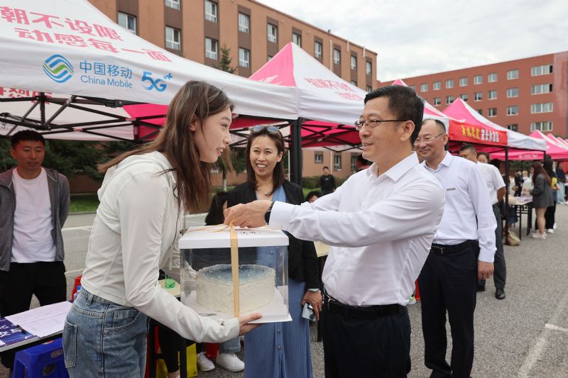 党委书记赵恒心为过生日新生送上蛋糕
