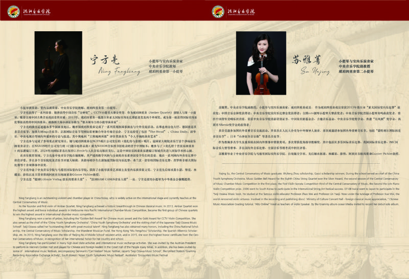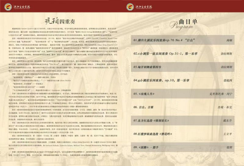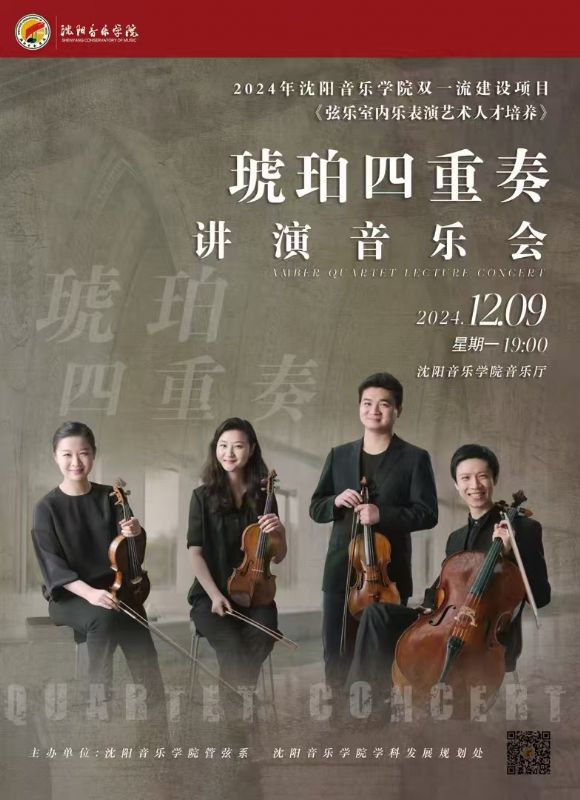 音乐会名称:2024年国产一区二区日本在线双一流建设项目《弦乐室内乐表演艺术人才培养》琥珀四重奏讲演音乐会