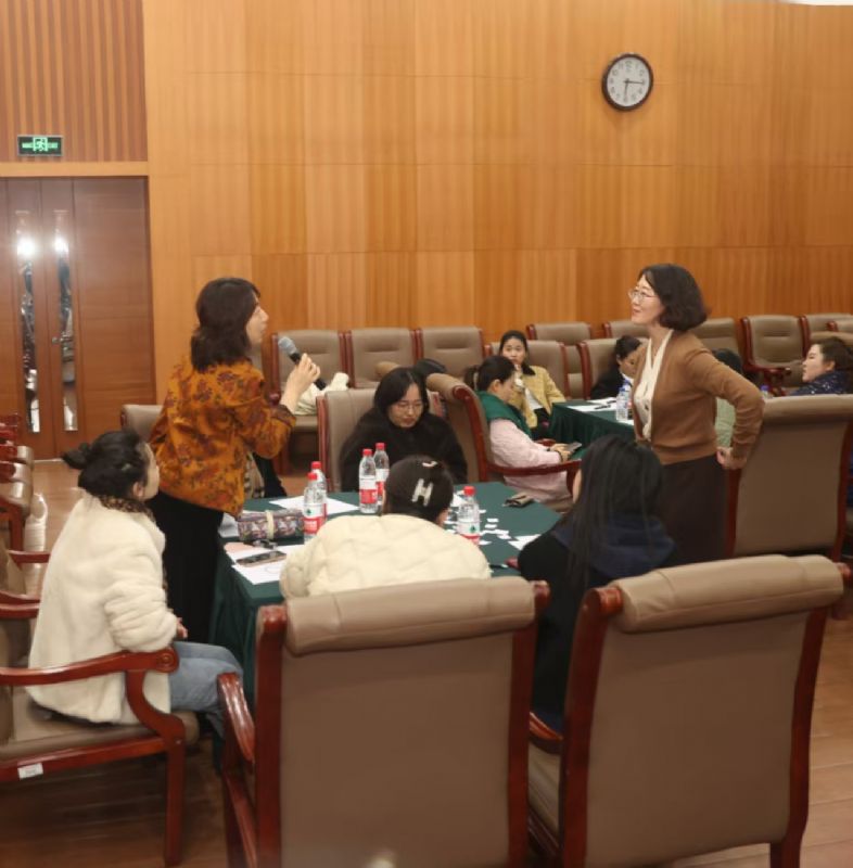 在讨论环节,女教职工们结合自身经历、对生活的感悟踊跃分享活动的感受。随着话题的深入,有人以幽默化解职场女性的日常压力,引得现场一片欢笑朗朗;有人诉说身为妈妈为女儿倾情付出的心路历程,动情之处眼含泪光;有人感慨母亲对自己无私的爱与奉献,感叹尽孝须趁早......她们的手指时而随着笑声在桌面上轻叩出欢快节奏,又会在某个共情瞬间不约而同地伸手触碰讲述者的肩头,大家在温暖的氛围中与同伴共创智慧,汲取能量,唤醒内在的力量,收获了科学评估生活平衡度的心理学工具、直面多重角色冲突的认知升级和一份专属自我的“平衡行动清单”。