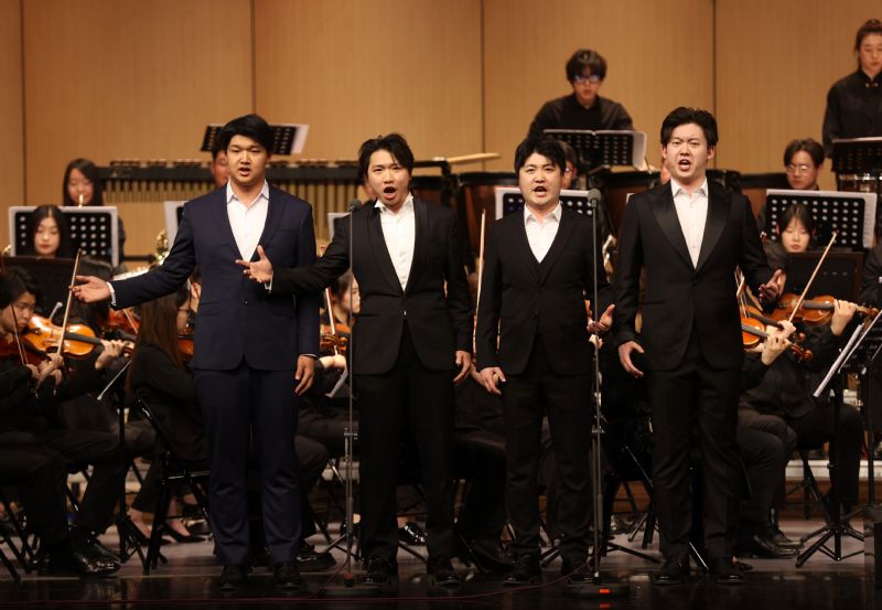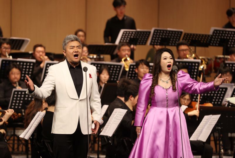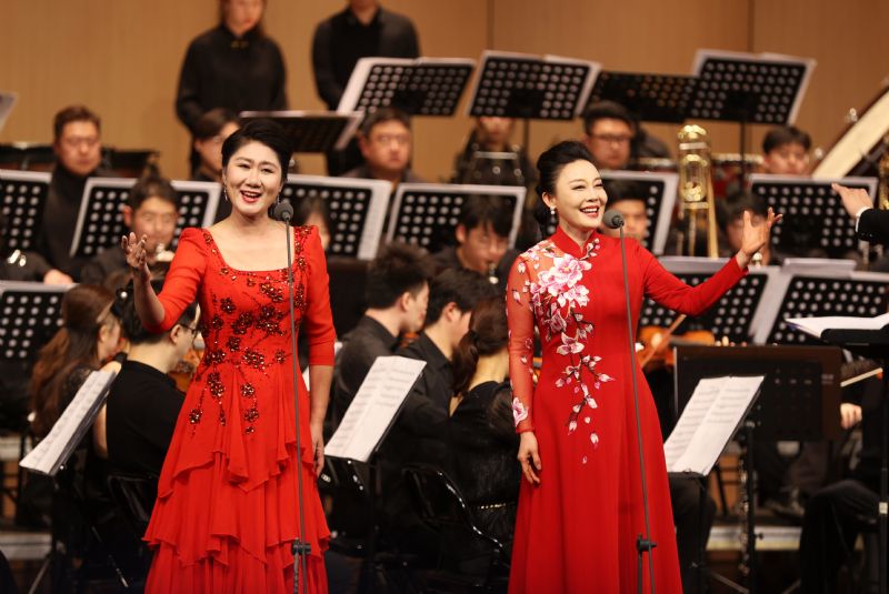 我院北方交响乐团还演绎了爱德华·埃尔加[英]《爱的致意》、约翰内斯·勃拉姆斯[德]《匈牙利舞曲第五号》、贝多芬《c小调第五交响曲“命运”》第四乐章、《太阳出来喜洋洋》《花好月圆》《丰收》等多首中西经典交响乐,西方交响的严谨结构与中国旋律的诗意流淌碰撞出奇妙的火花,从古典主义的理性到东方美学的写意,每个音符都在诉说人类共同的情感密码。