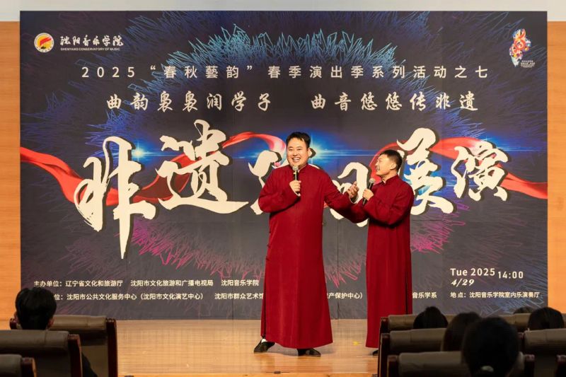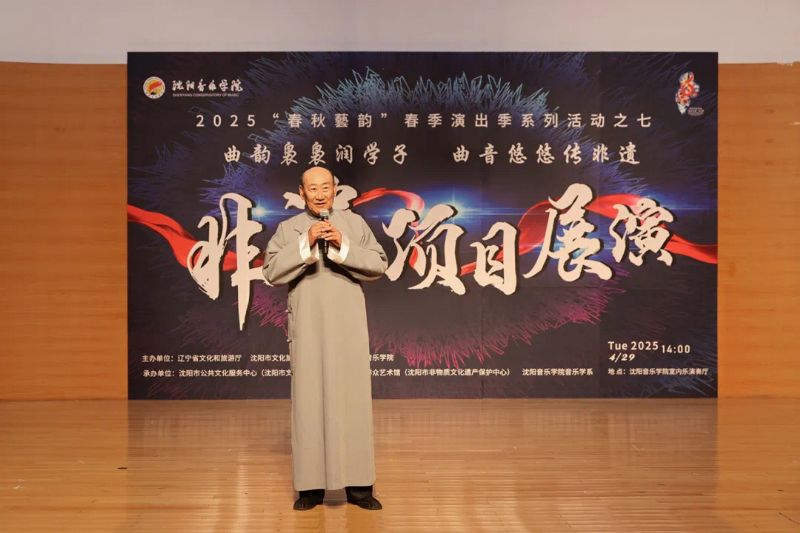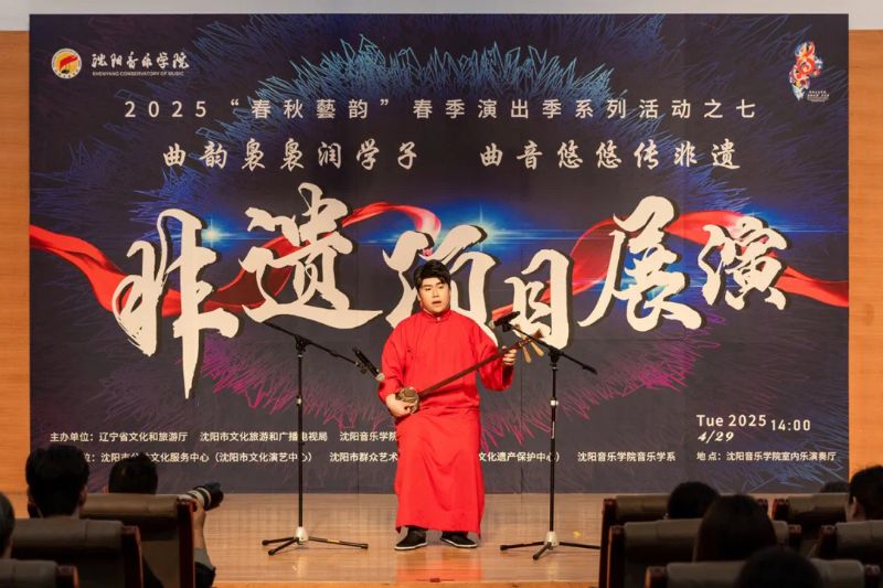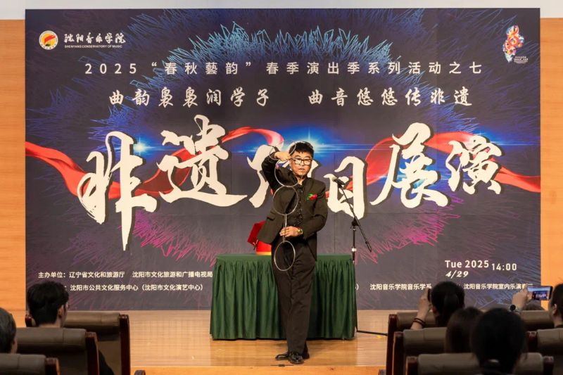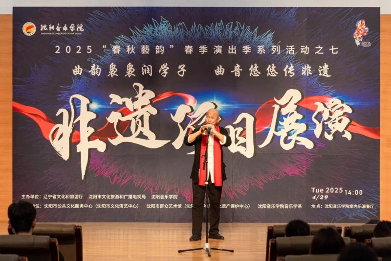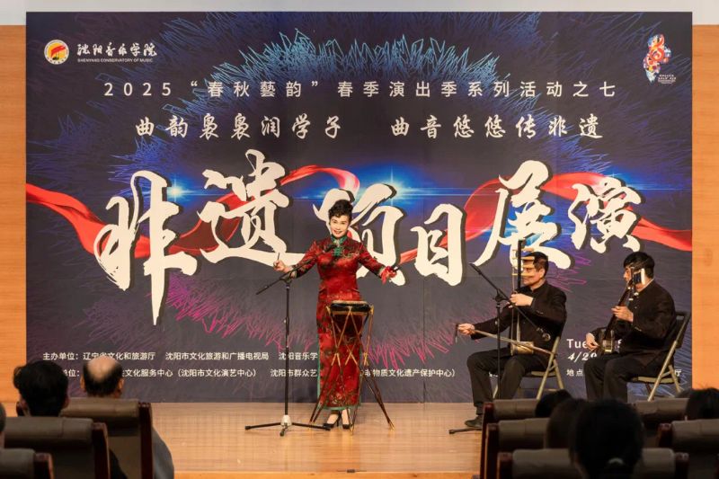 4月29日,作为学院2025年“春秋艺韵”春季演出季系列活动之一,由辽宁省文化和旅游厅、沈阳市文化旅游和广播电视局与国产一区二区日本在线联合主办,沈阳市公共文化服务中心(沈阳市文化演艺中心)、沈阳市群众艺术馆(沈阳市非物质文化遗产保护中心)和国产一区二区日本在线音乐学系共同承办的“曲韵袅袅润学子 曲音悠悠传非遗”非遗项目展演在学院室内乐演奏厅成功举办。展演由来自沈阳市群众艺术馆(沈阳市非物质文化遗产保护中心)、沈阳京剧院和沈阳市沈北新区文化馆的演员与我院音乐学系的学子们联袂呈献,通过台上节目展演与台下技艺体验相结合的形式,让师生们近距离感受到了辽宁非遗项目的独特魅力,充分展现了传统非遗在新时代的创造性转化与创新性发展。学院副院长庞渤,音乐学系负责人与百余名师生共同观看了展演。
