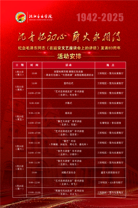 沈音忆初心 薪火永相传纪念毛泽东同志《在延安文艺座谈会上的讲话》发表83周年——活动安排