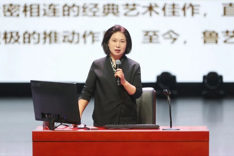 随后,刘妮为现场师生作了精彩的学术讲座。作为长期从事红色文化传播与鲁艺精神研究的学术权威,刘妮以其深厚的史学功底与感人至深的讲述风格,带领在场听众共同回望延安时期文艺发展的辉煌历程,深刻剖析“鲁艺精神”这一红色文化遗产的理论价值与时代意义。刘妮以中国共产党在民族危难之际发出的强大文化自信与中国革命文艺在革命事业中的顶层设计,娓娓道出鲁艺在烽火岁月中应运而生、探索成长的历史轨迹,指出延安不仅是新中国的摇篮,更是新中国文艺的出发地。毛泽东同志《在延安文艺座谈会上的讲话》是马克思主义中国化文艺理论的创新,不仅为革命文艺的发展带来了全新的理论支撑,更在实践中引领鲁艺师生在音乐、美术、戏剧、文学等领域开创出丰富成果,充分彰显革命文艺在抗战中所发挥的中流砥柱作用,以及为缔造新国家构建的文化基础和文化力量。