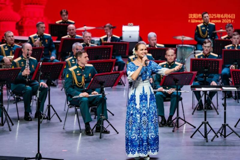 音乐会在俄罗斯功勋艺术家季莫费·马亚金少将指挥的柴可夫斯基《第四交响曲》终章的磅礴声浪中启幕。这部“命运抗争”的史诗,令观众仿佛置身硝烟弥漫的战场。歌曲《芦花》,演唱者以空灵的嗓音勾勒江南水韵,与俄罗斯民歌《毡靴》的“冬日幽默”形成诗意对话。维吾尔民歌《一杯美酒》热情奔放;巴拉莱卡琴奏响的《节日庆典》再现了斯拉夫民间婚礼的狂欢场景;歌曲《在希望的田野上》饱含对美好生活的赞美;歌曲《春天的芭蕾》《俄罗斯上空飞行》,演唱者以高超的演唱技巧引发观众赞叹;《五月华尔兹》经典的旋律将观众回到1945年那个鲜花漫天的胜利之春,《莫斯科郊外的晚上》《喀秋莎》熟悉的旋律则将全场气氛推向高潮,观众长时间起立鼓掌,致敬这场跨越80载的音乐对话。
