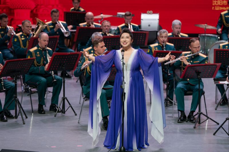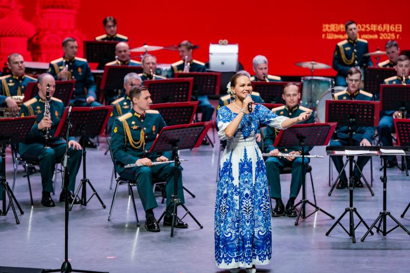 音乐会在俄罗斯功勋艺术家季莫费·马亚金少将指挥的柴可夫斯基《第四交响曲》终章的磅礴声浪中启幕。这部“命运抗争”的史诗,令观众仿佛置身硝烟弥漫的战场。歌曲《芦花》,演唱者以空灵的嗓音勾勒江南水韵,与俄罗斯民歌《毡靴》的“冬日幽默”形成诗意对话。维吾尔民歌《一杯美酒》热情奔放;巴拉莱卡琴奏响的《节日庆典》再现了斯拉夫民间婚礼的狂欢场景;歌曲《在希望的田野上》饱含对美好生活的赞美;歌曲《春天的芭蕾》《俄罗斯上空飞行》,演唱者以高超的演唱技巧引发观众赞叹;《五月华尔兹》经典的旋律将观众回到1945年那个鲜花漫天的胜利之春,《莫斯科郊外的晚上》《喀秋莎》熟悉的旋律则将全场气氛推向高潮,观众长时间起立鼓掌,致敬这场跨越80载的音乐对话。