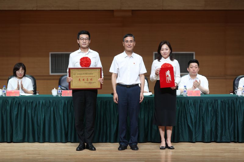 党委副书记孙旭东主持表彰大会。副院长王硕、纪委书记张健分别宣读了《关于表彰2023-2024年度优秀共产党员、优秀党务工作者和先进基层党组织的决定》和《关于表彰2023-2024年度优秀统战成员和先进集体的决定》。大会对33个先进集体、149名优秀个人进行了表彰,学院领导、党委常委为获奖的集体和个人颁发了奖牌、证书。