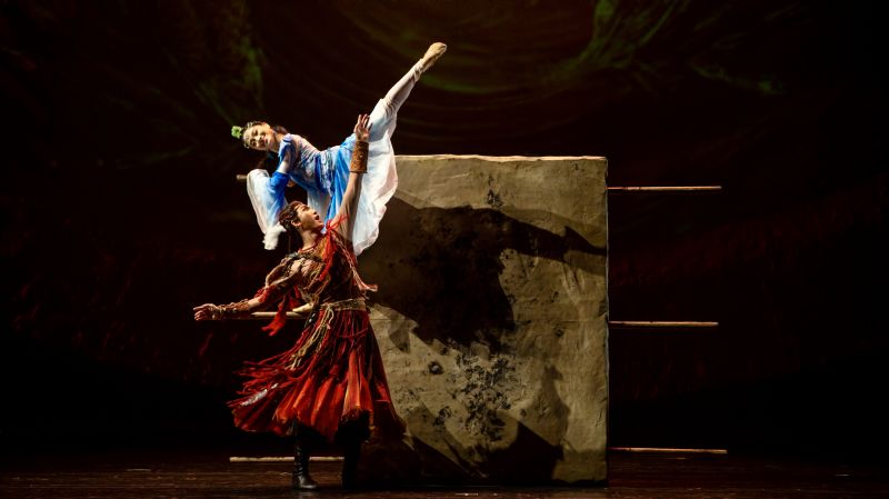 红山文化被誉为“中华文明的第一缕曙光”,舞剧引领观众回到五千年前的辽河流域,通过“玉碎”“求援”“祈雨”“洪殇”四个篇章讲述了红山古国一场寻玉、制玉、玉成、国建的奇瑰故事。舞台上运用全息投影、AR增强现实技术、智能灯光等现代科技手段,让千年红山的神秘传说在科技与艺术的交融中翩然苏醒。
