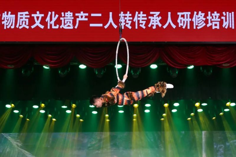 由音乐舞蹈研究所创作的节目《辽沈新篇唱振兴》将辽沈振兴的时代强音融入小帽联唱,传统唱腔与现代主题的结合令人耳目一新;群舞说唱《二人转三百年》则以舞蹈与说唱形式,生动展现了二人转三百年的沧桑历程。演出在压轴节目《艺脉相传・绢舞情》中达到高潮,老中青三代艺人共同演绎,上下翻飞的手绢象征着非遗薪火的代代相传。这场结业仪式与汇报展演,不仅是对30天研培成果的完美呈现,更是二人转非遗在新时代焕发新生的宣言。