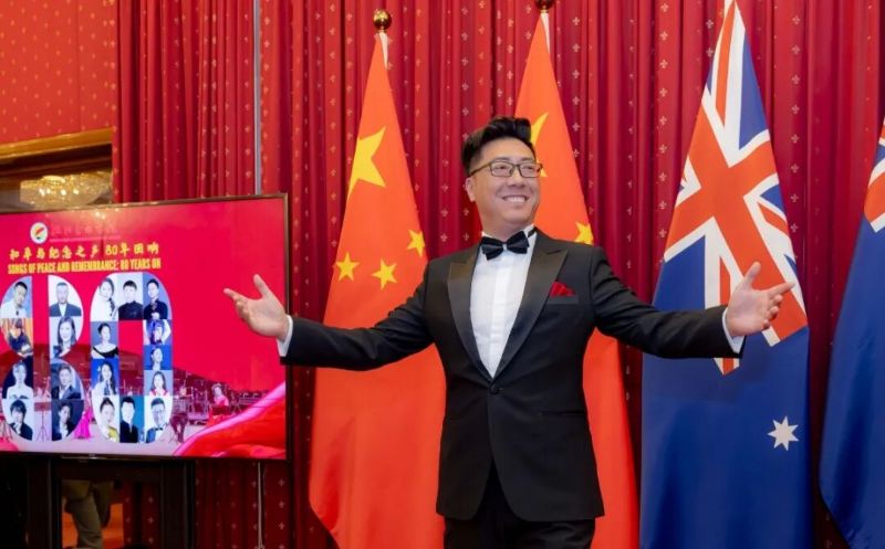 在中国驻澳大利亚大使馆,《我爱你中国》《把一切献给党》《百鸟朝凤》等饱含爱国情怀的歌曲和民乐经典响彻全场,《我和我的祖国》动人的歌声彰显音乐跨越国界的力量。中国驻澳大利亚特命全权大使肖千,澳联邦参议员休布里奇、各驻澳使团、华侨华人、留学生代表与各界人士近400人出席。