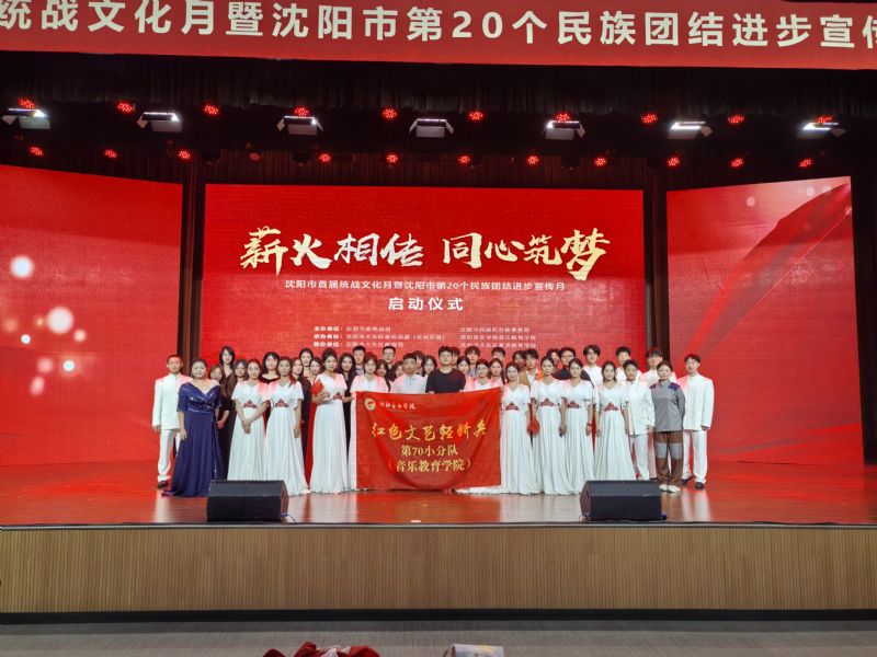 9月5日,沈阳市首届统战文化月在大东区素质教育学校正式启动。我院“红色文艺轻骑兵”音乐教育学院小分队师生受邀参加活动,并在活动启动仪式上演出了精彩的文艺节目。沈阳市委统战部、市民族和宗教事务局、大东区委等相关领导观看演出。